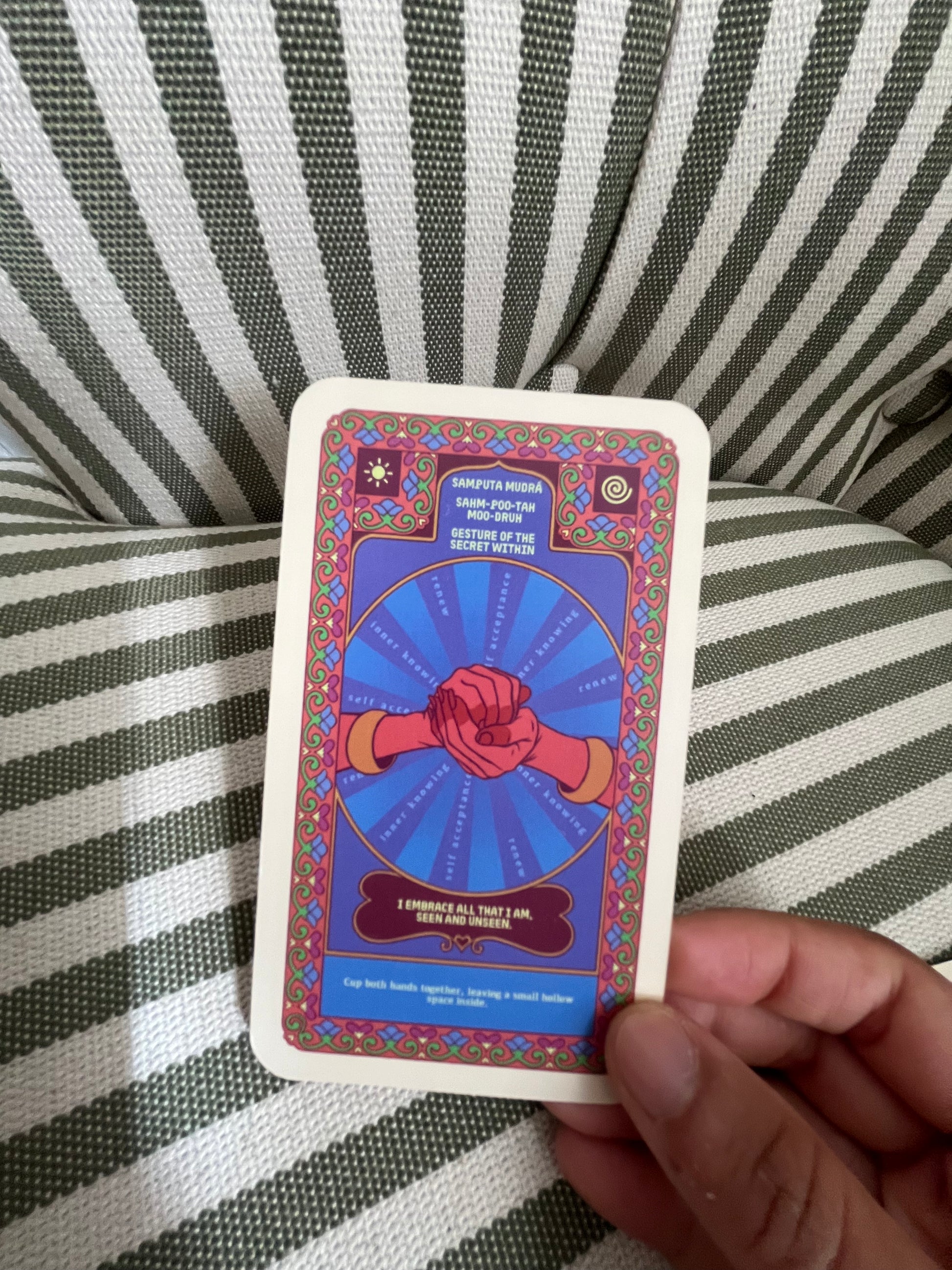High quality material, beautifully made and with the most incredible designs - these cards are a new favourite deck of mine and I’ll be getting more as gifts for my friends interested in yoga. I recommend to anyone who is interested in learning about mudras AND wants some versatile cards because this deck is also a set of playing cards! Obsessed with these, thank you SO much✨💛
